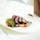 1. 120g Restovaná kuracia pečeň na cibuľke v zemiakovej placke, kapustový šalát s uhorkou